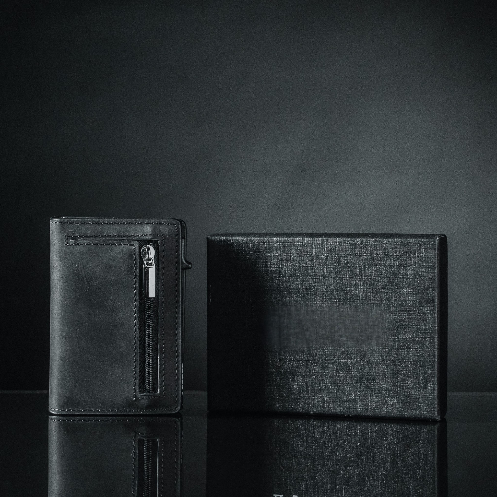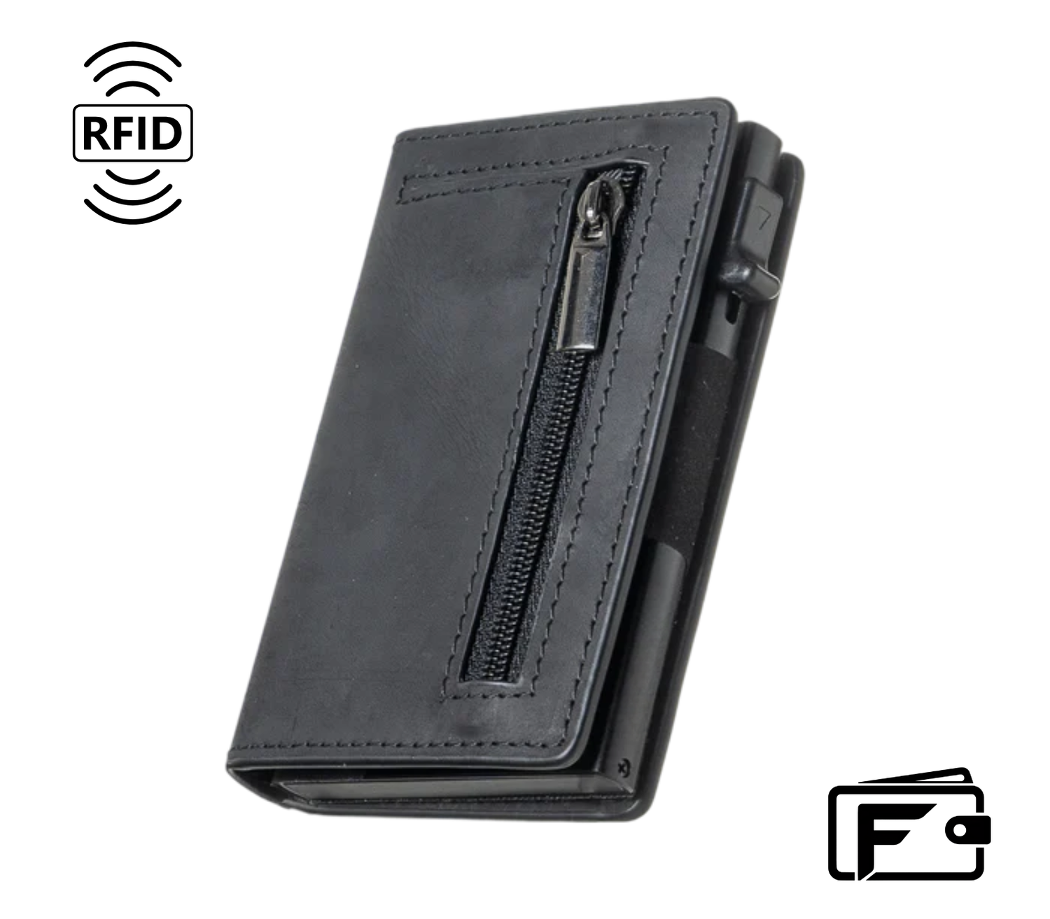 Dzięki naszej funkcji smart slide możesz uzyskać dostęp do wszystkich swoich kart jednym kliknięciem, a żadna z nich nie wypadnie. Dodatkowo nasz portfel blokuje sygnały RFID i NFC, chroniąc twoje karty przed kradzieżą danych.